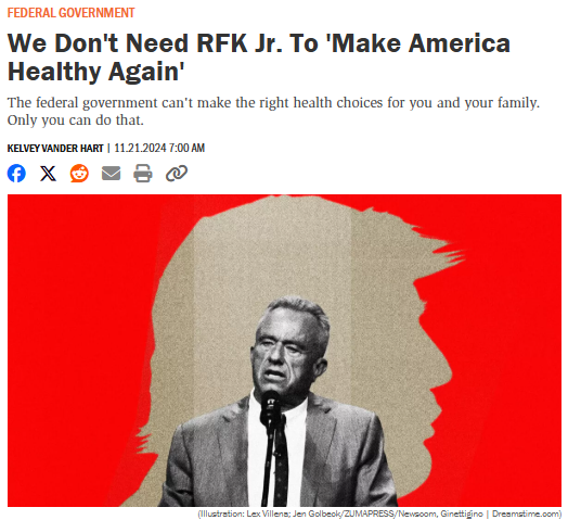 “We Don’t Need RFK Jr. To ‘Make America Healthy Again'” for Reason magazine can be read here.