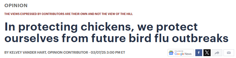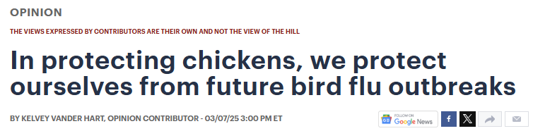 “In protecting chickens, we protect ourselves from future bird flu outbreaks” for The Hill can be read here.
